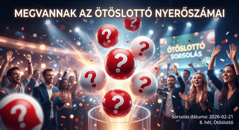 Ötöslottó sorsolás eredmények 2026. február 21. – A 8. hét nyerőszámai Az Ötöslottó 2026/08. heti sorsolásán a következő számokat húzták ki: 9, 12, 26, 47, 49. Tekintse meg a részletes…