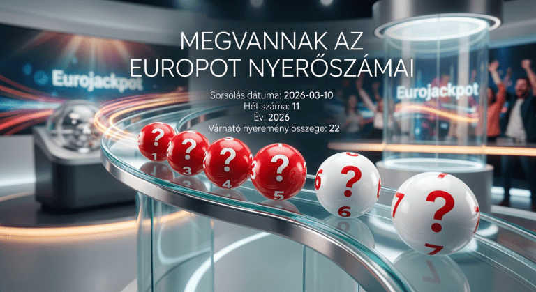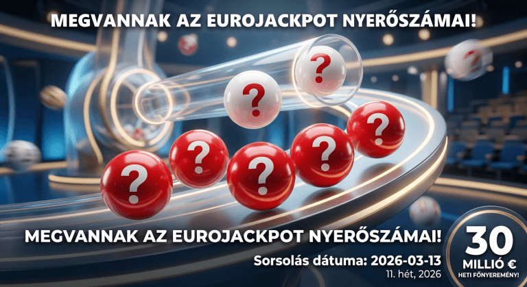 Eurojackpot sorsolás eredmények és nyerőszámok (2026. március 13.) Az Eurojackpot 2026/11. heti sorsolásán a következő nyerőszámokat húzták ki: 7, 23, 37, 44, 47 + 2, 6 Euró számok. A sorsolást…
