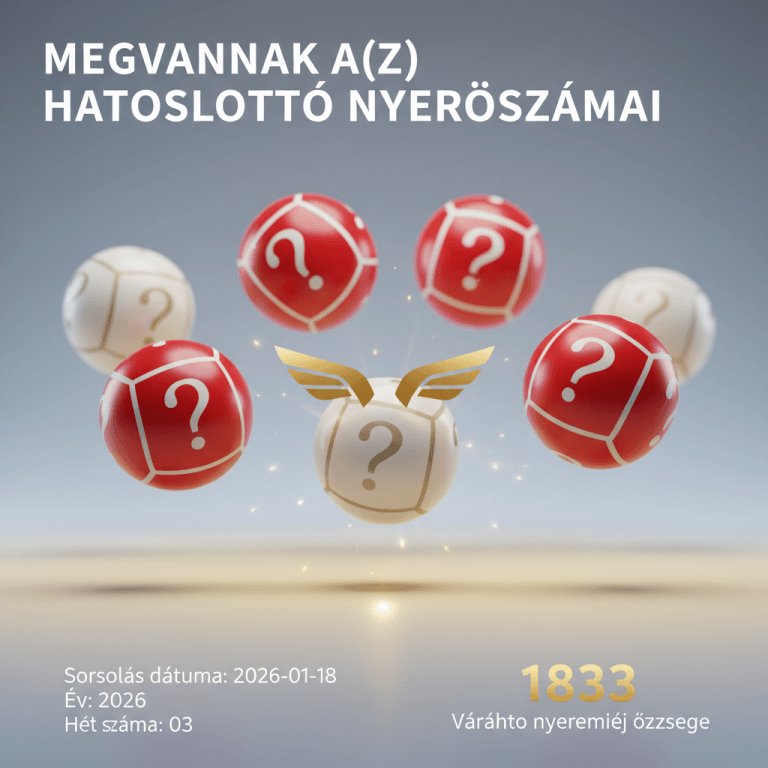 Hatoslottó sorsolás 2026. 9. heti nyerőszámai – Március 1-i eredmények A 2026-03-01-i Hatoslottó sorsoláson a következő számok kerültek kihúzásra: 8, 9, 14, 16, 34, 44. Nézd meg a 9. heti…
