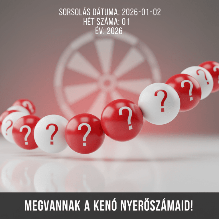 Kenó nyerőszámok 2026-01-04 – Az év első sorsolásának eredményei Ismerd meg a Kenó legutóbbi sorsolásának eredményeit! 2026. 01. 04-én kihúzott nyerőszámok és minden fontos információ az év első Kenó sorsolásáról….
