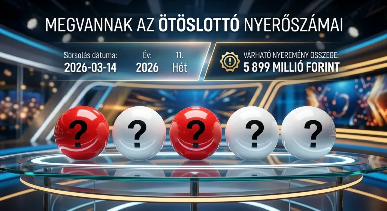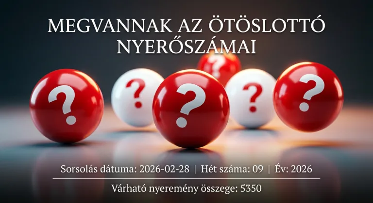 Ötöslottó nyerőszámok: 2026. 12. hét – Március 21-i sorsolás eredményei A 2026. március 21-i Ötöslottó sorsoláson a következő számokat húzták ki: 7, 18, 22, 52, 89. A várható főnyeremény összege…