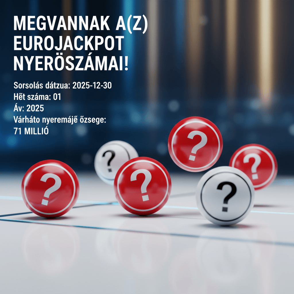 Az Eurojackpot 2025/01. heti sorsolásán kihúzott nyerőszámok, a december 30-i Joker számok és várható nyeremények részletes összefoglalója. Minden, amit a 2025-ös év első Eurojackpot sorsolásáról tudni érdemes.