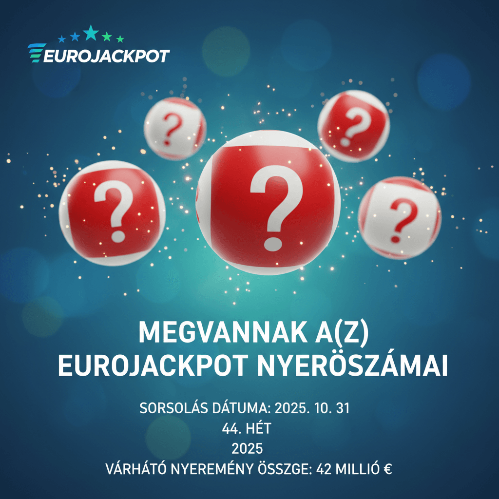 Eurojackpot nyerőszámok: Íme a 44. heti sorsolás eredményei (2025-10-31)