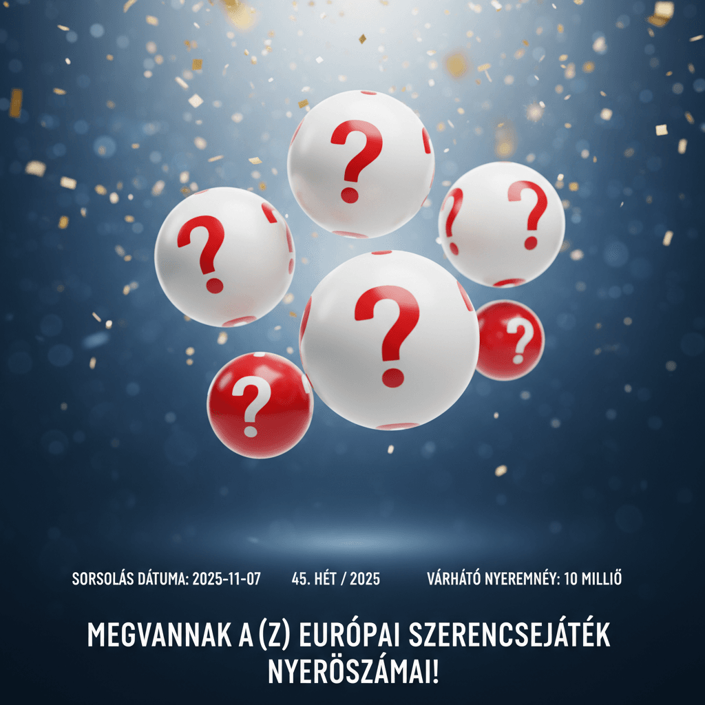 Megvannak a 2025.11.07-i Eurojackpot lottó sorsolás nyerőszámai! Nézd meg, hogy a 45. héten kihúzott számok között vannak-e a te tippjeid! Tájékozódj naprakészen az aktuális Eurojackpot sorsolásról.