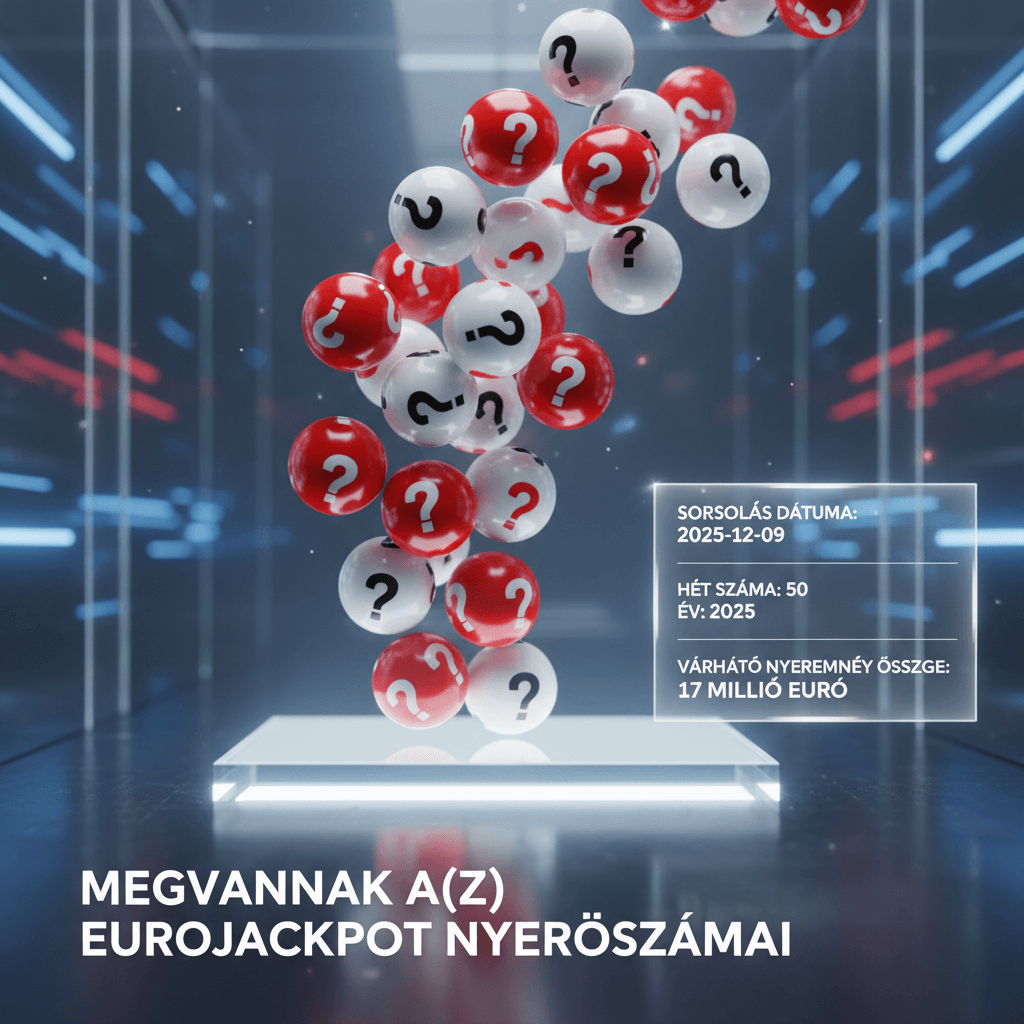 Az Eurojackpot legutóbbi, 2025. december 9-i sorsolásán a következő nyerőszámok kerültek kihúzásra: