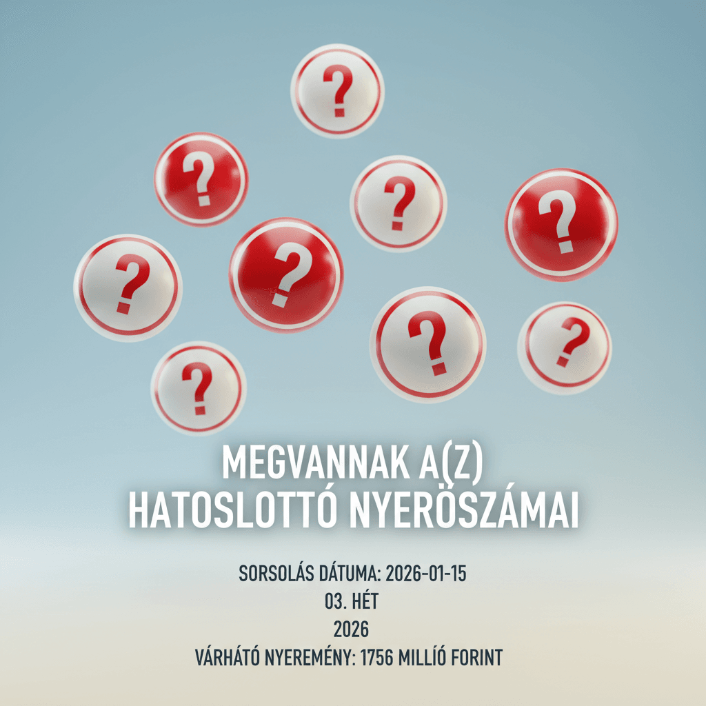 A 2026. január 15-i Hatoslottó sorsoláson a szerencse a következő számokra mosolygott: 9, 20, 21, 24, 27, 30. A várható nyeremény összege 1756 millió forint, amely rekord közeli összegnek számít a Hatoslottó történetében!