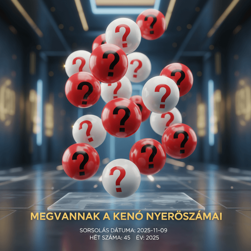 Kenó nyerőszámok: 2025/45. hét sorsolási eredményei (2025-11-09)