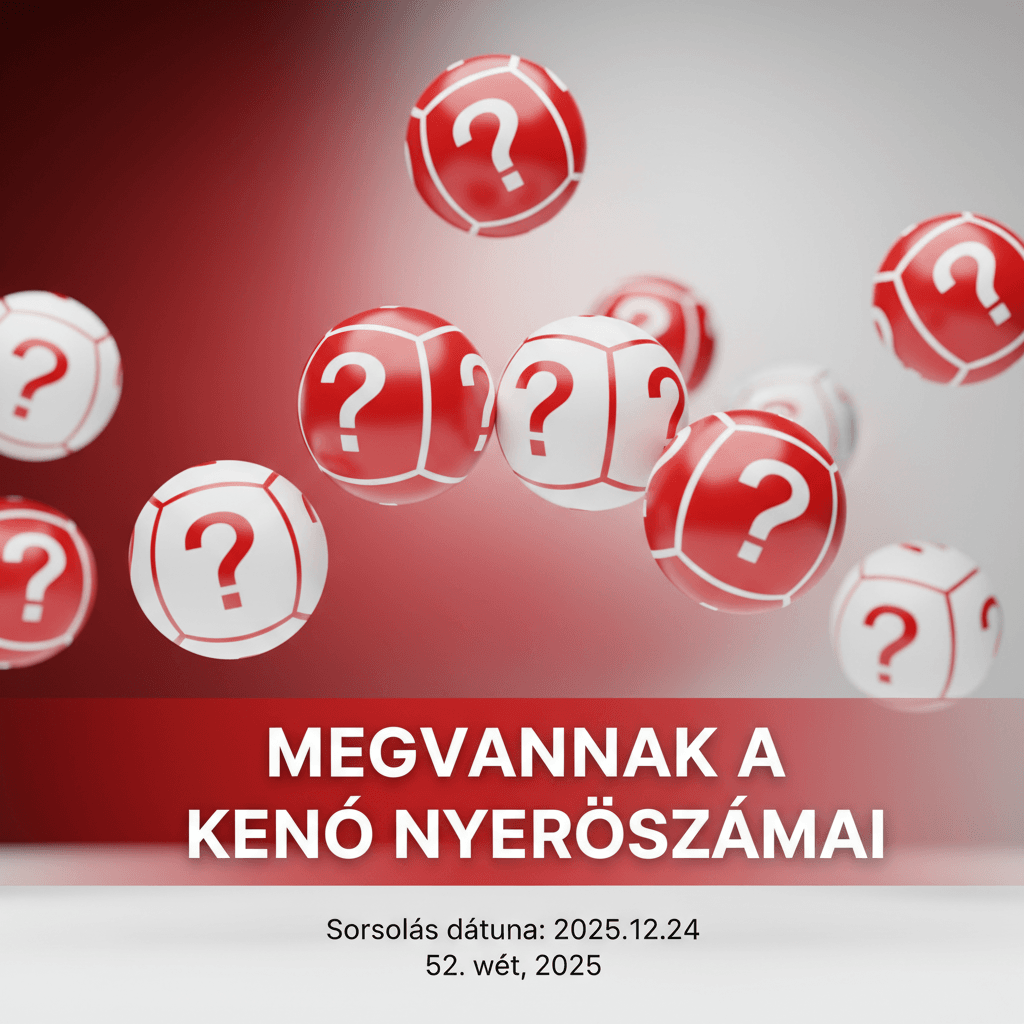 Összefoglaló: A 2025. december 24-i Kenó sorsolás hivatalos nyerőszámai, a karácsonyi, 52. heti lottó sorsolás részletes eredménye. Az év utolsó Kenó sorsolásán kihúzott 20 nyerőszám teljes listája.