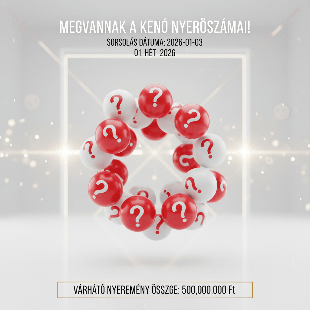 A 2026-01-03-i Kenó sorsolás nyerőszámai és részletes eredményei. Nézd meg a 2026. év első hetének Kenó lottó sorsolását, ahol összesen 20 szerencsés számot húztak ki.