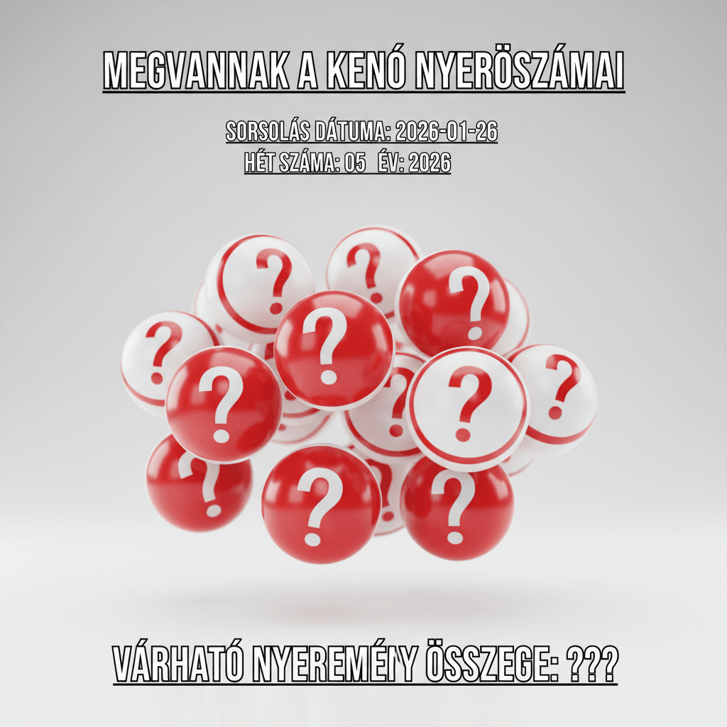 Megjelentek a Kenó 2026.01.26-i sorsolási eredményei. Mutatjuk a friss nyerőszámokat és minden fontos információt az 5. heti sorsolásról.