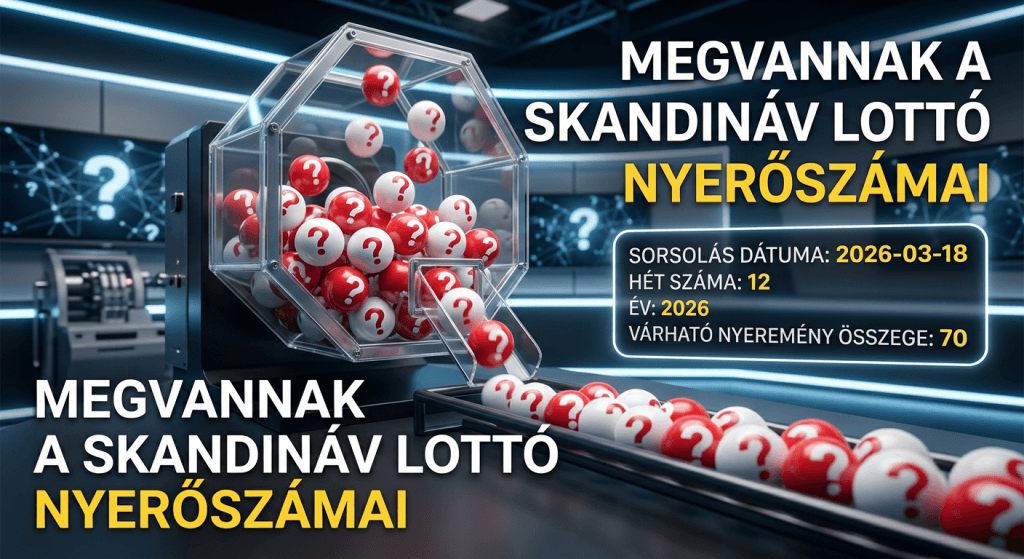 A Skandináv Lottó 2026. március 18-i sorsolásán a következő nyerőszámokat húzták ki: 4, 7, 8, 10, 11, 14, 25. A várható nyeremény 70 millió forint. A játékosok szerda 18:00-ig adhatják le tippjeiket.